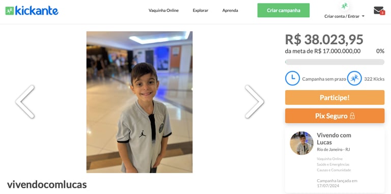 Aqui na vaquinha virtual oficial do VIVENDO COM LUCAS, sua doação cai diretamente em um site seguro, feito especialmente para este tipo de campanha.